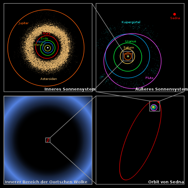 Abstand Sonne - Oortsche Wolke: 40 Lichtstunden bis 1,5 Lichtjahre